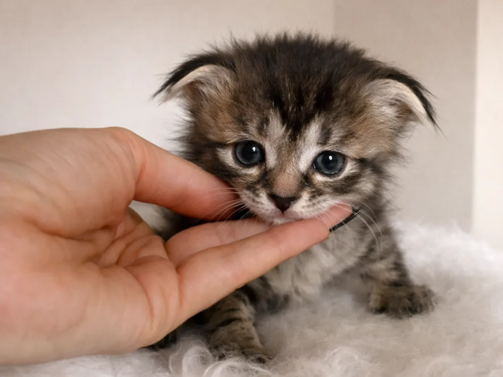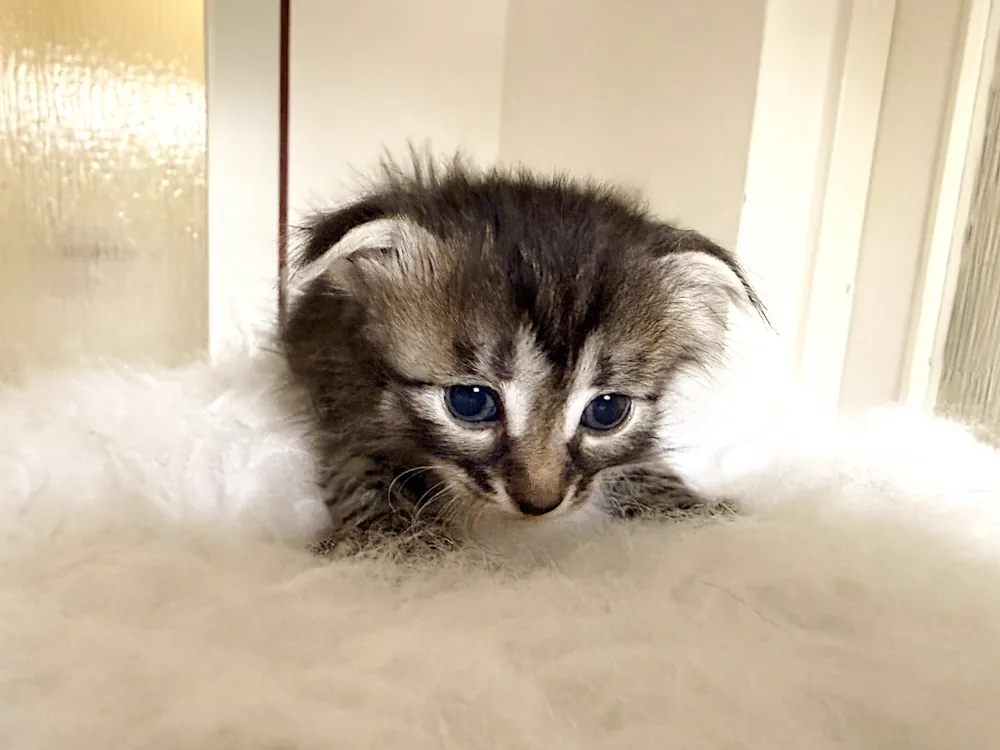 Typ uší kotě: fold (ouška dole), straight (běžná ouška).