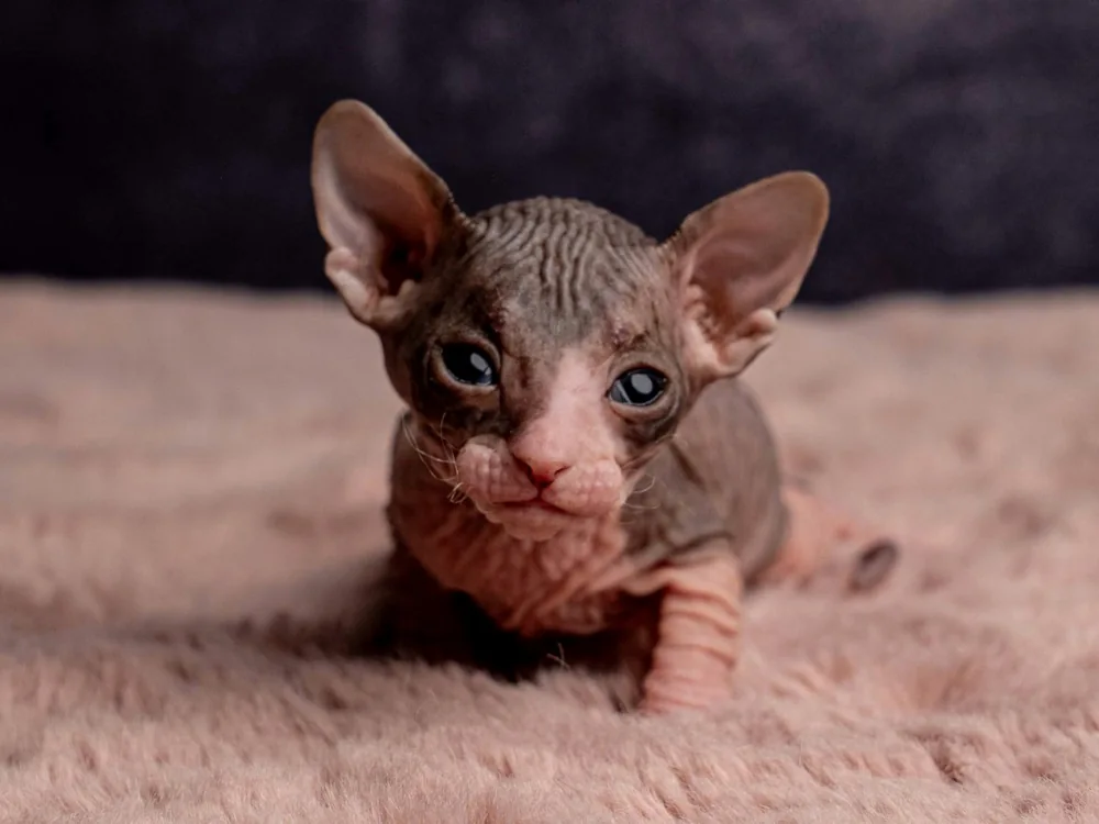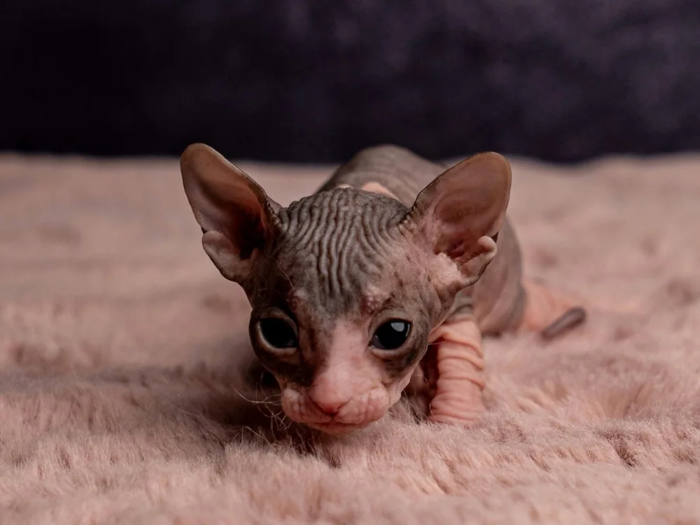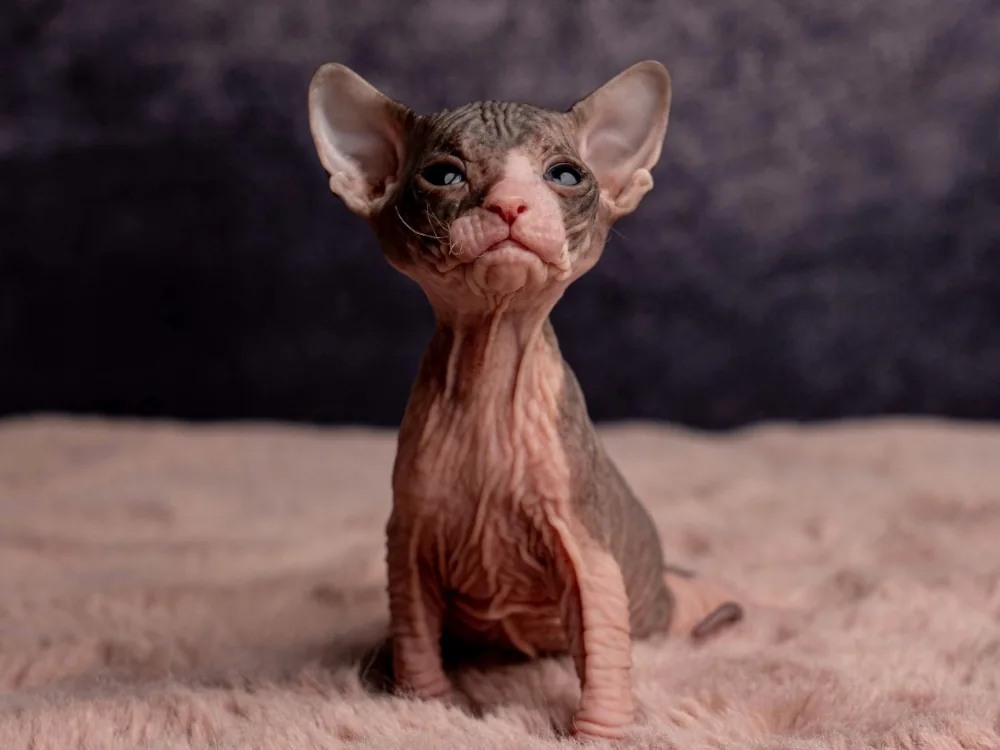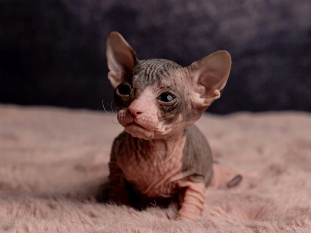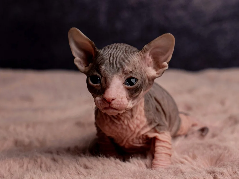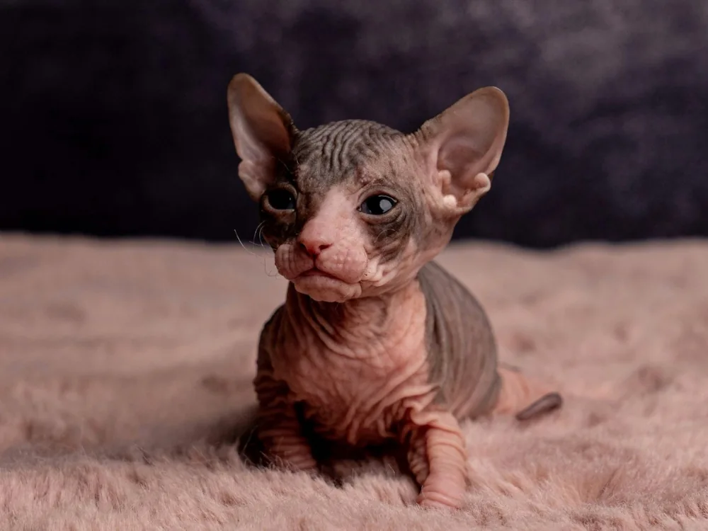 Marylin je kočičí slečna plemene Ukrajinský levkoy (straight). Barva: černá dvoubarevná.